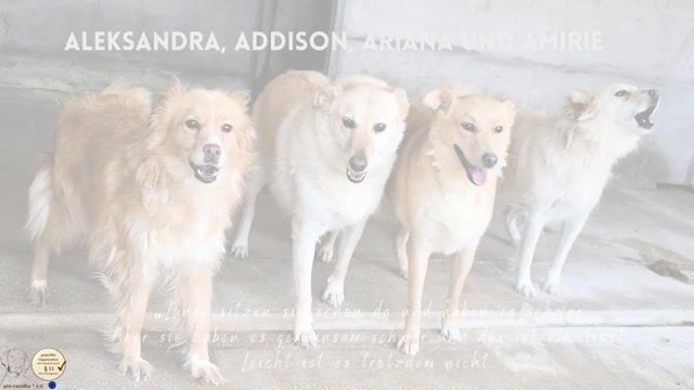 Nun, Astrid Lindgren kannte unsere Schwestern Addison, Aleksandra, Amirie und Ariana nicht, wir aber wissen, dass sie sich immer noch in dieser misslichen Lage befinden. Unsere Geschwister sitzen gemeinsam schon 3 ¼ endlose Jahre tagein tagaus in dieser trostlosen Umgebung auf engstem Raum. Sie haben nur sich, sie kennen nichts anderes von der Welt, als füreinander da zu sein, um sich gegenseitig Schutz zu bieten. Ein Zusammenhalt, aus der Not geboren, der die Seele berührt. Unsere Addison ist gemäß aller Umstände eine scheue aber dennoch freundliche Hündin geblieben, die sich auch anfassen lässt. Sie ist der Bezugspunkt unter den vier hübschen Hündinnen, an der sich ihre Schwestern orientieren. Gemeinsam geben sie sich in einer Ecke des Zwingers gegenseitig Halt.