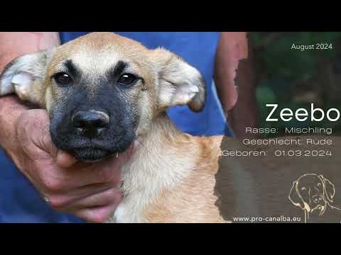 Viel gibt’s nicht vorzustellen, wenn man erst fünfeinhalb Monate alt ist, aber ich tue, was ich kann: Also, ich bin Zeebo und ich habe ein beiges Fell, nur meine Schnauze ist dunkel, fast schwarz. Die Tierschützer sagen, ich wäre ein nettes, lebhaftes Hundekind, das keine Scheu vor Menschen hat. Auf den Videos bin ich noch nicht lebhaft, denn da wurde ich gerade auf die Wiese gebracht und wenn ich an einem fremden Ort bin, sagen die Tierschützer, würde ich mich nicht sofort trauen, überall rumzuschnüffeln, aber das sei ganz normal.