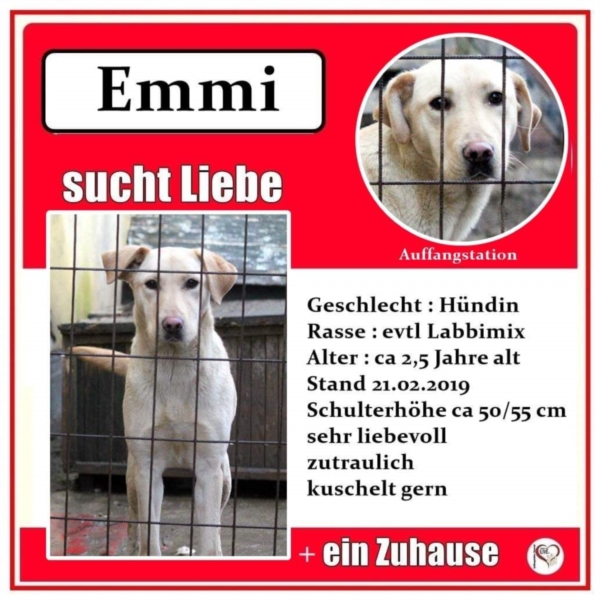 Emmi /Hündin / ca 2,5 Jahre alt / SH ca 50/55 cm / groß /evtl Labbimix