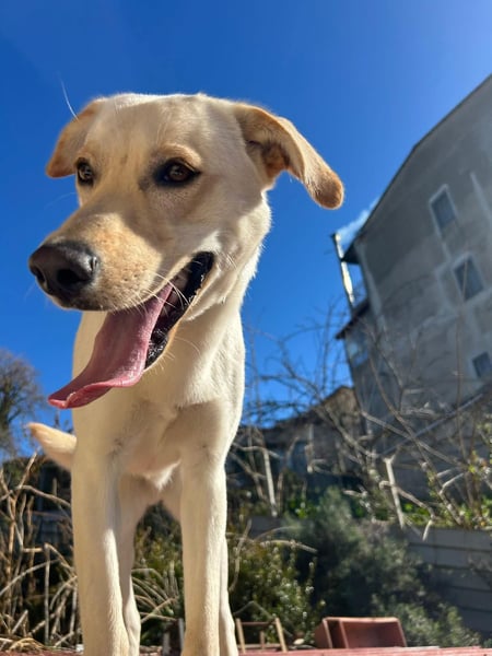 Lello ist ein großes Kind von freundlich-überschwänglichem Wesen. Er verfügt über Energiereserven ohne Ende (was Wunder,- kann er sich doch derzeit gerade einmal am Tag für kurze Zeit auspowern), und einen, zwar mittels Leine, an der Lello führ- und lenkbar ist, einigermaßen zu zügelnden, aber derzeit nicht wirklich zu befriedigenden Bewegungsdrang. Die kurzen ‚Ausgänge‘ Lellos sind sein tägliches Fest, welches er mit kerzengeraden Luftsprüngen einzuleiten pflegt. Nach ein paar kurzen ‚Kreuzzügen‘ durch die Umgebung seines derzeitigen Domizils heißt es für Lello dann aber auch schon wieder - ‚warten auf bessere Zeiten‘ -……..