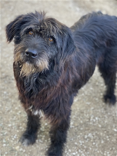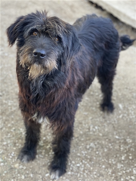 Novi ist eine ca. 2-jährige Hündin mit einem schwarz-braunen zotteligen Fell, welches ihr einen charmanten Look verleiht. Ein markanter weißer Fleck ziert ihre Brust und hebt sich schön von ihrem Fell ab. Ihre wunderschönen, treuen braunen Augen strahlen einen liebevollen Blick aus, der sofort das Herz berührt.