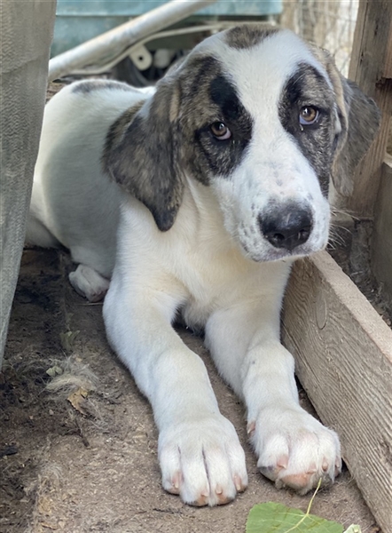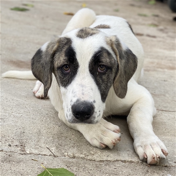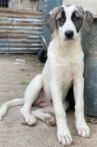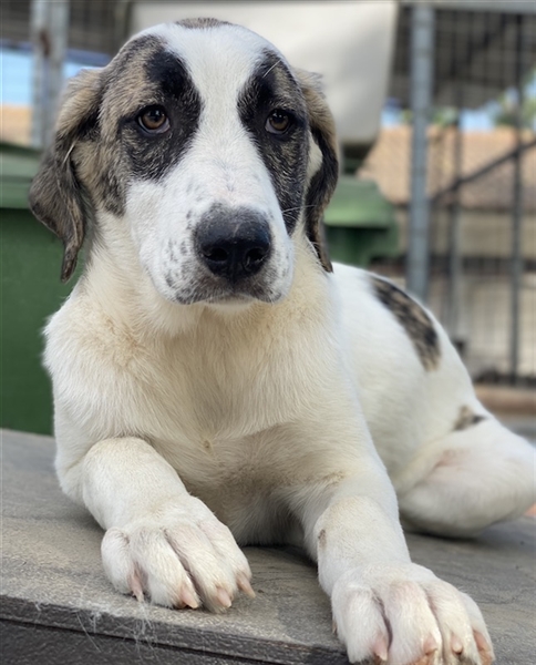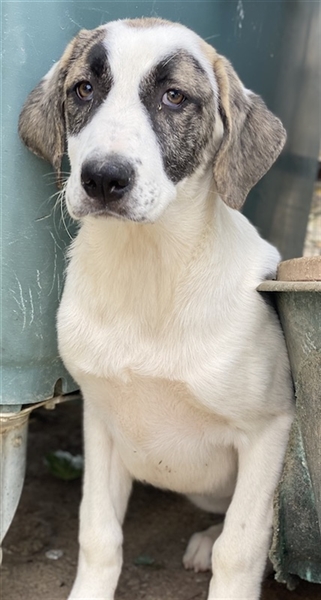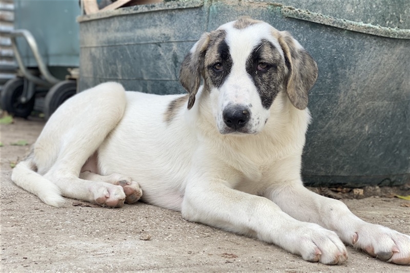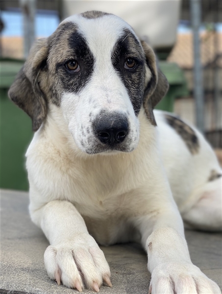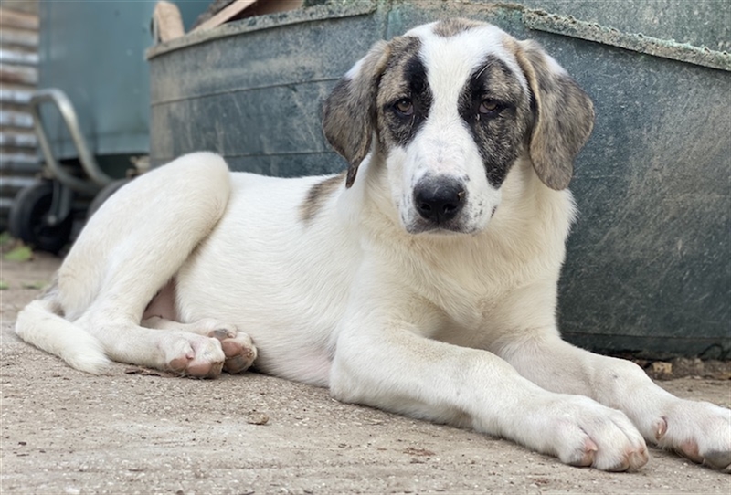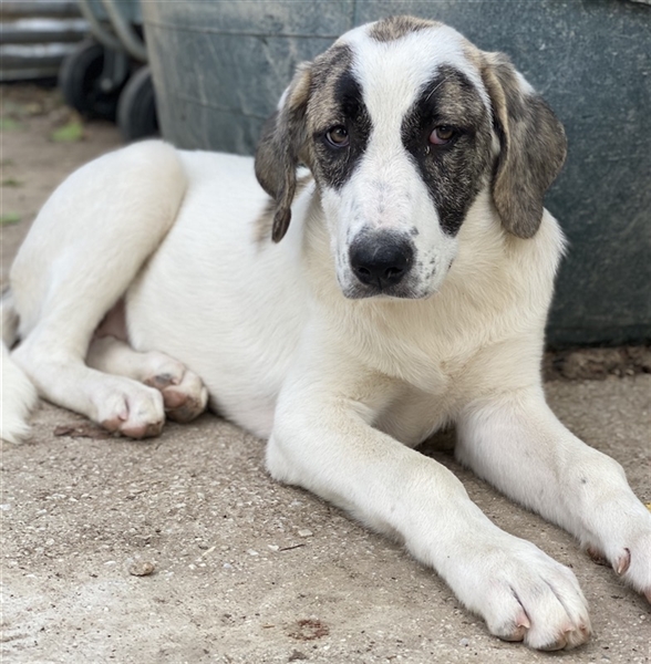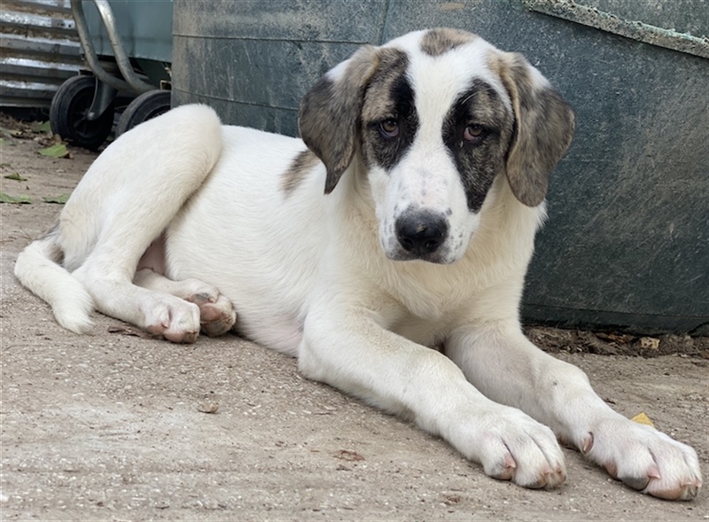 Antoya ist ein bezauberndes Welpenmädchen mit einer sehr schönen Fellzeichnung. Der Großteil ihres Fells ist zwar weiß, jedoch gibt es ebenso einige dunkle Flecken, die sie zu einem besonderen Hingucker machen. Mit einer erwarteten Größe von ca. 55-60 cm wird Antoya zu einer stattlichen Hündin heranwachsen. Doch nicht nur ihr äußeres Erscheinungsbild ist beeindruckend, sondern auch ihre Charaktereigenschaften: Bisher zeigt sich Antoya als sehr aufgeschlossener, lieber und freundlicher Welpe, der seinem Alter entsprechend verspielt ist und sich bislang auch mit seinen Artgenossen verträglich zeigt. Auch über menschliche Aufmerksamkeit in Form von Streicheleinheiten freut sich Antoya bisher sehr. Für Antoya wünschen wir uns eine Familie, die ihr eine liebevolle, aber auch souveräne Erziehung mit klaren Regeln bietet, damit sie ihr volles Potenzial entfalten kann.