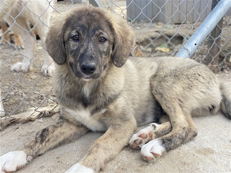 Ein weiteres Mitglied dieser großen Familie und eine ganz besondere Schönheit ist das Hundemädchen, welches auf den Namen Amelie hört. Ihr Fellkleid weist eine außergewöhnliche, gestromte Zeichnung auf, die durch die weiße Brust und die weißen Pfoten einen schönen Kontrast erhält. Zum Verlieben, oder? Amelie bringt auch gute Voraussetzungen mit, die ihr den Start in ihr neues Leben erleichtern können. Denn die Junghündin präsentiert sich aktuell von ihrer besten Seite. Unsere HelferInnen beschreiben Amelie als freundliches und liebes Hundemädchen, das aufgeschlossen auf sie zugeht und sich sehr verschmust zeigt. Mit ihren Artgenossen ist sie verträglich und das Spiel mit den Geschwistern ist aktuell ihre Lieblingsbeschäftigung. Leider ist das Leben im Tierheim sehr stressig für die Hunde, da es sehr laut und eintönig ist. Daher wünschen wir Amelie, dass sie schon bald erfahren darf, was es heißt, als vierbeiniges Familienmitglied viel Liebe und Geborgenheit zu erhalten. Man könnte sagen, dass Amelie bereit für eine fabelhafte Welt ist. So ein richtiges Zuhause mit etwas Spielzeug, einem gemütlichen Hundebett zum Schlummern, viel Zeit für Spiel, Spaß und Streicheleinheiten - das wäre das Allergrößte für Sie. Wenn Sie zudem noch bereit sind, gemeinsam mit Amelie zu trainieren und zu arbeiten, dann wird sie sich sicher zu einer wunderbaren Freundin auf vier Pfoten entwickeln können. Wie sieht es aus: Können Sie sich vorstellen, in Zukunft gemeinsam mit Amelie durchs Leben zu gehen? Dann freuen wir uns auf Ihre Anfrage!