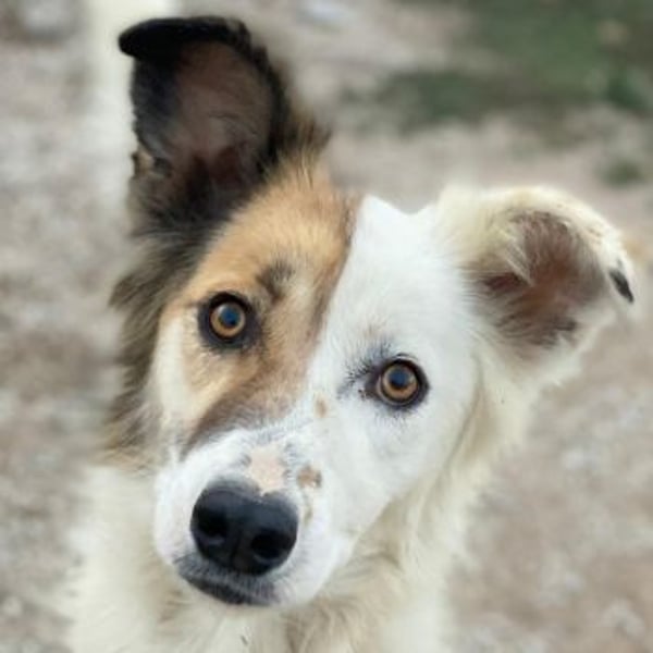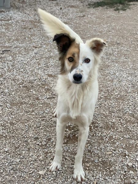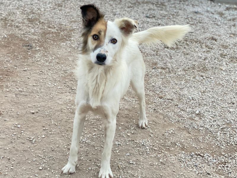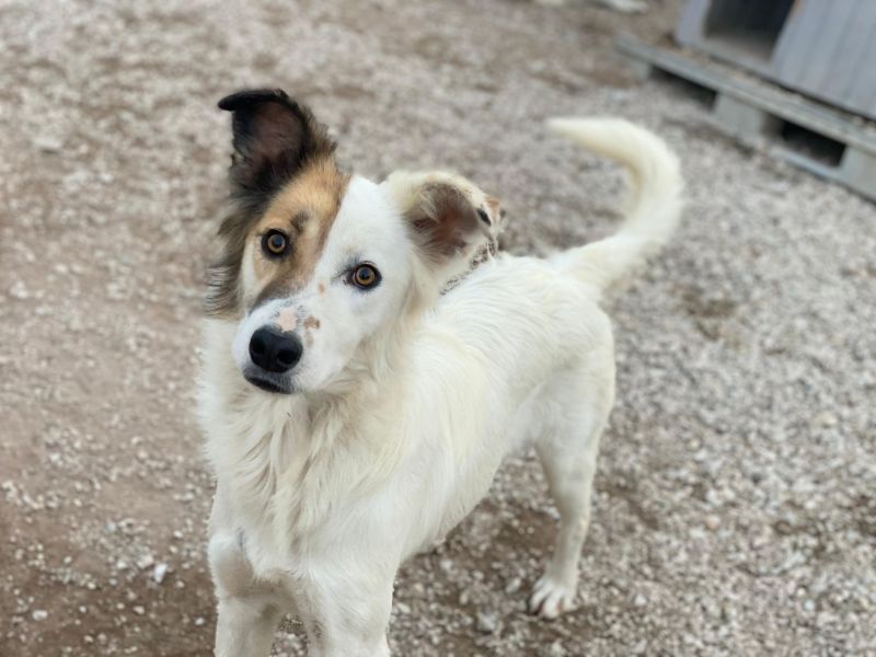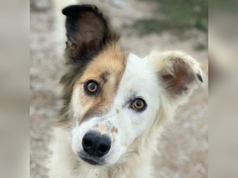 Motti ist eine entzückende Hundedame und hat ein wunderschönes, weißes und flauschiges Fell. Ihre rechte Gesichtshälfte und ihr Ohr sind in einem sanften Braunton gehalten, was sie zu einem absoluten Blickfang macht. Aber das ist noch nicht alles - Motti hat auch lustige Knicköhrchen, die ihr einen ganz besonderen Charme verleihen.