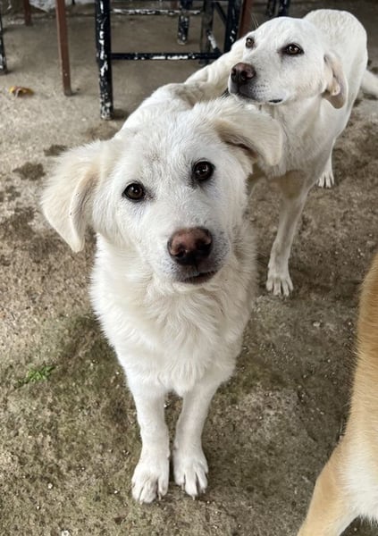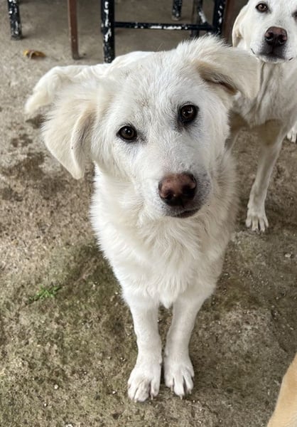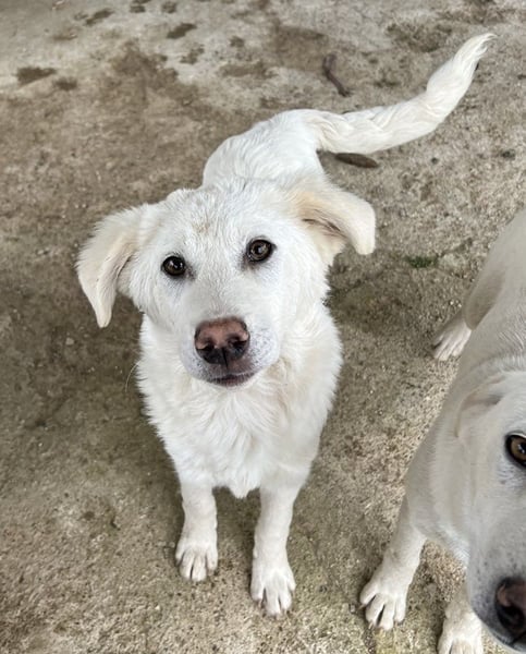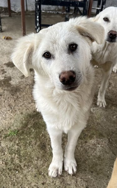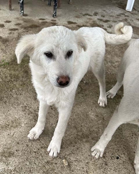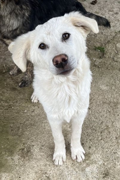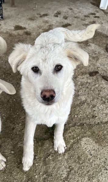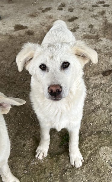 Nuala ist eine bildschöne, junge Hündin mit einem schneeweißen Fellkleid. Sie hat dunkle Augen mit einem liebevollen und warmen Blick. Mit ihren Geschwistern und den anderen Hunden, sowohl Rüden als auch Hündinnen, auf der Pflegestelle zeigt sie sich aktuell aufgeschlossen und verträglich. Menschen gegenüber verhält sie sich neugierig und freundlich. Auch über Streicheleinheiten freut sie sich sehr genießt jede Minute Aufmerksamkeit. Doch genau diese schönen Minuten kommen leider aktuell viel zu kurz.