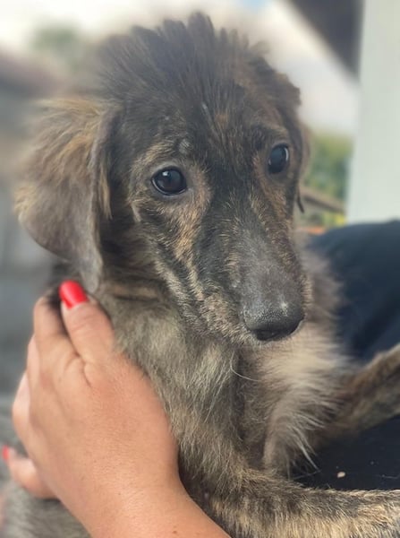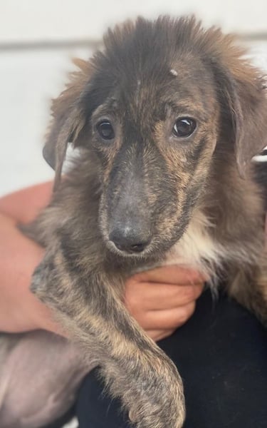 Kaya ist eine freundliche, wunderschön marmorierte Junghündin mit wuscheligem Fell in verschiedenen Brauntönen. Momentan ist sie noch zurückhaltend, denn sie konnte in ihrem jungen Leben noch nicht viel kennenlernen. Sie braucht Zeit, um zu verstehen, dass sie nun in Sicherheit ist. Mit anderen Hunden zeigt sie sich aktuell verträglich.