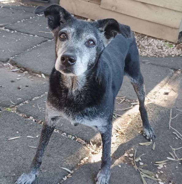 Lilika ist eine ruhige, freundliche und sehr liebe Hündin, die mit ihrem sanften Blick sofort das Herz berührt. Sie zeigt sich verträglich mit anderen Hunden, und auch Katzen konnte sie bereits kennenlernen. Besonders genießt sie die Zuwendung der Menschen – jede kleine Aufmerksamkeit lässt ihr Herz höherschlagen. Mit ihrem schwarzen Fell, den zarten grauen Abzeichen und den süßen, leicht abstehenden Ohren ist Lilika einfach bezaubernd.