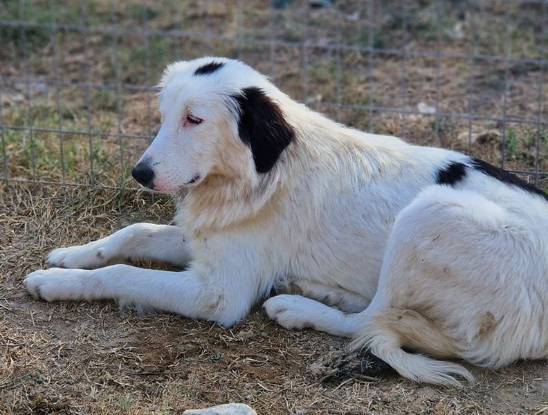 Namika hat ein überwiegend weißes Fellkleid. Sie hat einen schwarzen Punkt auf dem Kopf sowie eine süße, schwarze Nase. Ein Ohr ist ebenfalls schwarz und das andere hat schwarze Akzente. Namika überzeugt unsere HelferInnen in Griechenland aber auch mit ihrem Wesen, denn sie zeigt sich freundlich und aufgeschlossen. Mit den anderen Hunden vor Ort versteht sie sich aktuell gut.