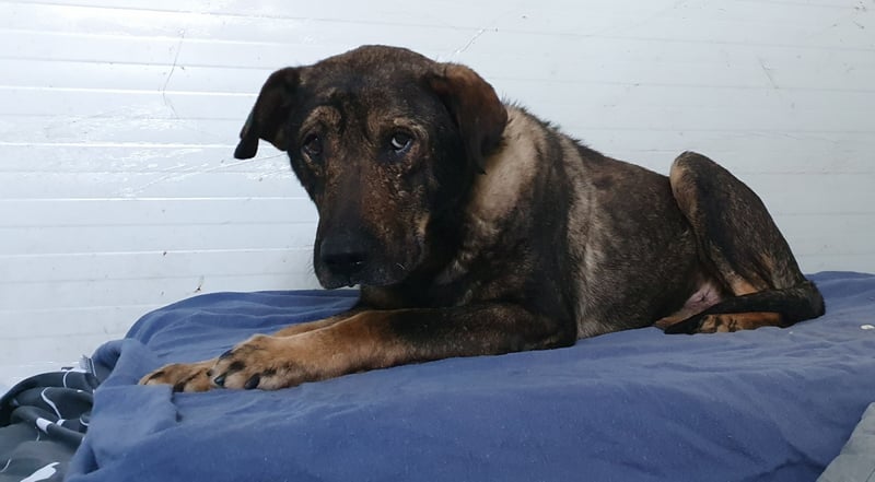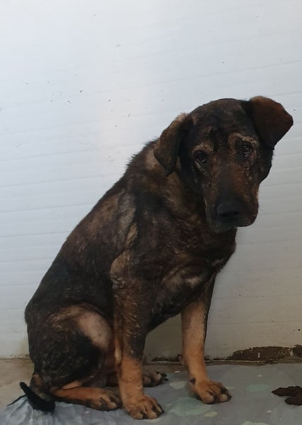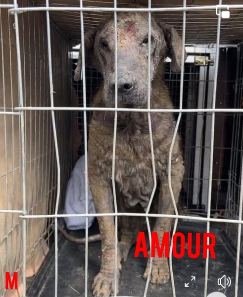 Amour hatte einen unglaublich schweren Befall von Demodex. Sein Anblick tat einem weh. Der komplette Körper war trocken, spröde, aufgerissen, er war eigentlich nackt, keine Spur mehr von Fell zu sehen. Wir können nur erahnen, welche unglaublichen Schmerzen Amour ertragen musste. Zum Glück konnten wir ihn dennoch sichern und mitnehmen, so dass wir sofort mit der Behandlung beginnen konnten.