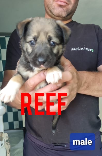 Reef ist ein entspannter, verspielter, neugieriger und freundlicher junger Mann. Er ist sehr sozial und offen für alles. Am liebsten zerpflückt er die Hosen von unseren Helfern, um Aufmerksamkeit für sich zu ergattern.