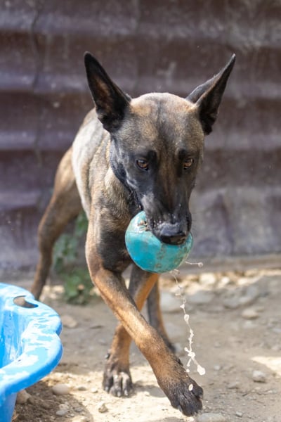 Im Tierheim zeigte sich schnell, dass Gina sehr unterfordert ist. Die hübsche, energiegeladene Hündin liebt es, mit dem Ball zu spielen. Dabei ist sie sehr aufgeregt, kann sich jedoch zurücknehmen, wenn sie kurz warten muss, bevor der Ball erneut fliegt. Gleichzeitig kann sie aber auch gut zur Ruhe kommen, wenn man ihr Spiel ignoriert. Gina ist zudem sehr lernfreudig und kann sich konzentrieren, um mit Menschen zu kooperieren – Sitz, Platz und Pfötchengeben hat sie bereits gelernt. Sie genießt Nähe, Zuneigung und Kuscheleinheiten sehr und lässt sich problemlos anfassen.