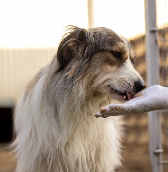 Lucy teilt sich momentan den Zwinger mit ihrer Schwester Leslie. Beiden Hündinnen sind gegenüber Menschen anfangs noch etwas unsicher. Lucy ist die Mutigere von den beiden. Betritt man den Zwinger, wird man freudig von den beiden begrüßt. Setzt man sich hin, kommt Lucy gerne zur Hand, genießt Streicheleinheiten und nimmt gerne Leckerlis an.