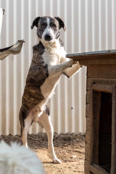Wir vermuten, dass in Jimmi ein Herdenschutzhund (HSH) steckt. HSH-Mixe sind oft sehr selbständig, haben ein hohes Bewusstsein für Territorien und brauchen eine souveräne Führung ( siehe auch https://pfotenherz-tierschutz.com/verhaltensthemen )