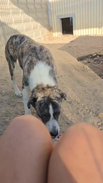 Jimmi teilt sich momentan den Zwinger mit Yucca. Die zwei begrüßen einen freundlich, wenn man den Zwinger betritt. Jimmi ist noch unsicher Menschen gegenüber. Gibt man ihm etwas Zeit und setzt sich auf den Boden, kommt er vorsichtig her und nimmt gerne Leckerlis aus der Hand. Auch sanfte Streicheleinheiten mag er gerne.