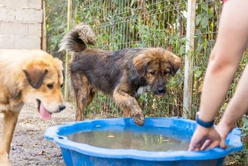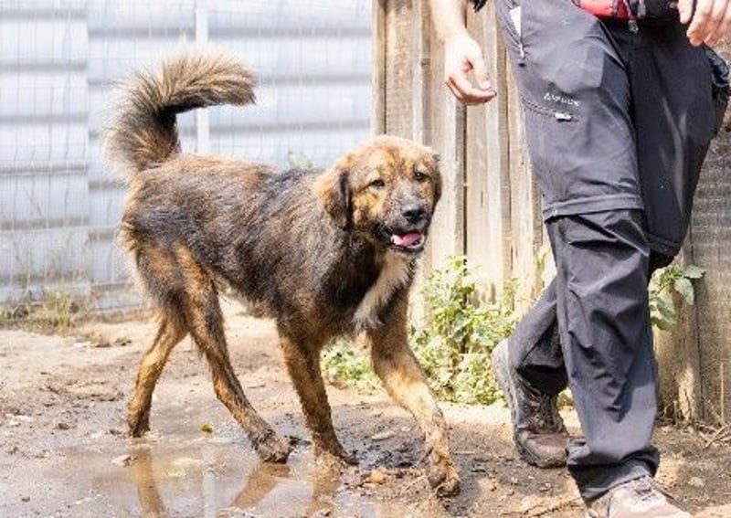 Er ist ca. 57cm groß. Im Tierheim zeigt er sich menschenbezogen, aufgeweckt und freundlich, aber auch eine territoriale Veranlagung zeigt sich. Puiu liebt Wasser und den Pool in seinem Zwinger und ist eher der Draufgänger der Geschwister.