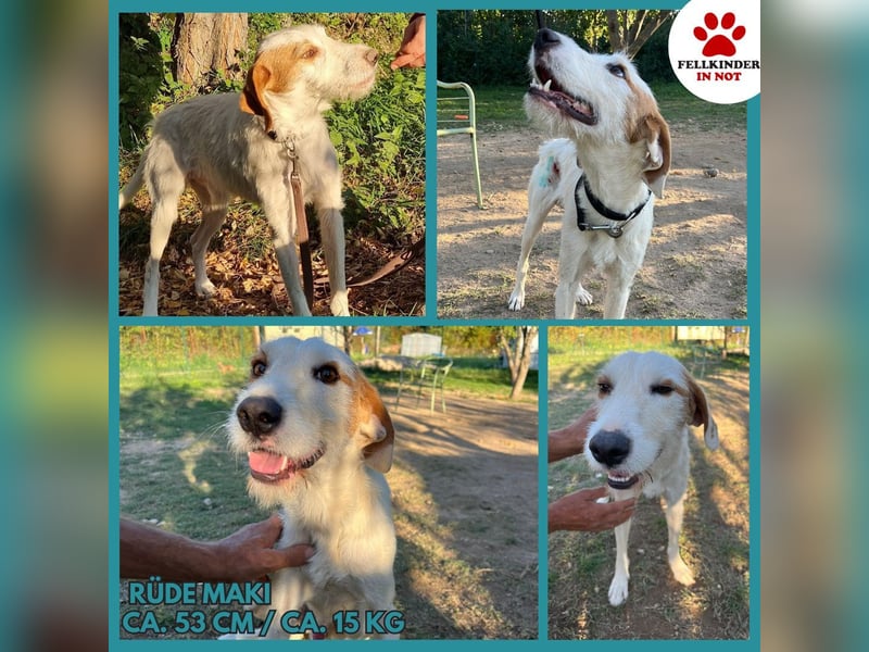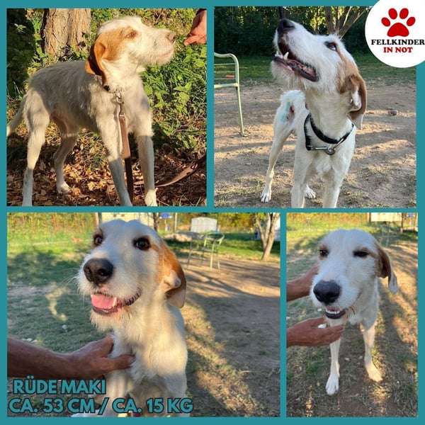Maki ist ein mittelgroßer Mischlingsrüde. Vermutlich steckt in dem hübschen Kerl ein Hauch Terrier. Maki wurde mit einem glatten Durchschuss aufgefunden. Dieser wurde medizinisch versorgt und heilte sehr gut ab. Trotz seiner Verletzung ist er immer noch zutraulich und genießt die Aufmerksamkeit, die er bekommt. Mit seiner freundlichen und lebensfrohen Art wickelt er alle schnell um seine Pfoten.