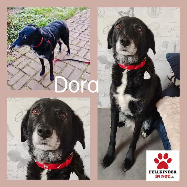 Dora ist eine menschenbezogene und aufmerksame Hündin. Sie liebt es, mit ihrem Frauchen lange Spaziergänge zu machen und die Natur zu entdecken.