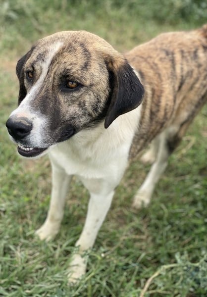 Indira, was übersetzt „die Schöne“ bedeutet, macht ihrem Namen alle Ehre. Diese auffällig hübsche Hundedame mit dem wunderbar gestromten Fellkleid sticht aus ihren Geschwistern ein wenig hervor, denn im Gegensatz zu diesen hat sie ein helleres Fell mit weiß-braunen Applikationen. Auch wenn Indira eine stattliche Hündin ist, möchte sie eine freundliche Hündin bleiben, die ihre tollen Charaktereigenschaften langfristig beibehält. Um das zu gewährleisten, sollten ihre neuen Besitzer daher von Anfang an mit Herzblut und Verstand an der Hundeerziehung arbeiten. Mit ihren Geschwistern und auch mit anderen Artgenossen versteht sich Indira zum aktuellen Zeitpunkt ohne Probleme. Wollten Sie schon immer einem Hund aus dem Auslandstierschutz ein Zuhause schenken? Dann nur zu! Eine aussagekräftige Selbstauskunft ist der erste Schritt in eine gemeinsame Zukunft. Wir freuen uns sehr, von Ihnen zu hören.