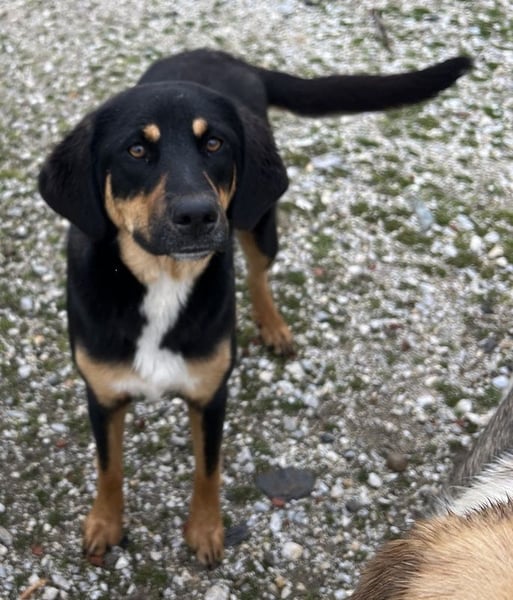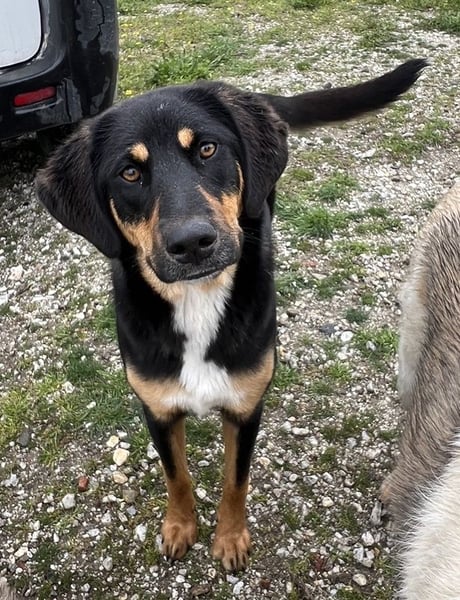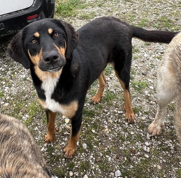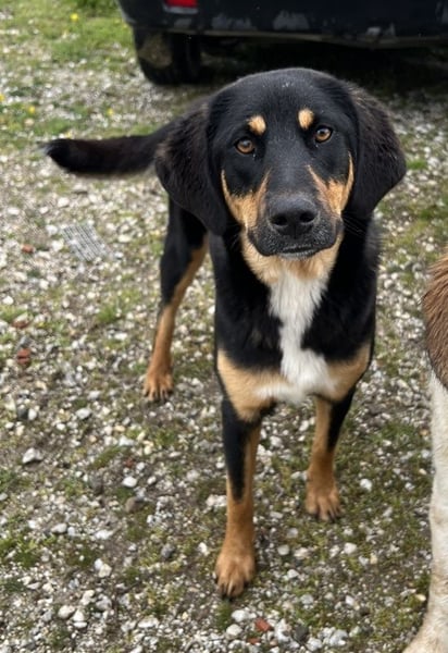 Letti, geb. ca. 05/2024, lebt in GRIECHENLAND, auf einem Gelände, auf dem die Hunde notdürftig versorgt werden