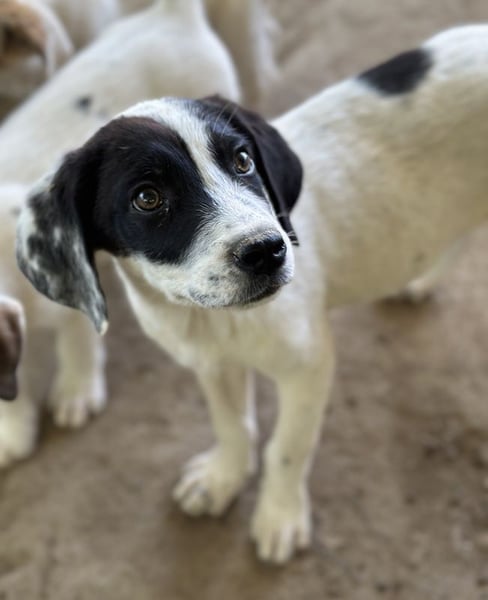 Auf der Pflegestelle zeigt sich Utha als ein freundliches, liebes und verspieltes Welpenmädchen. Auch äußerlich ist Utha eine echte Schönheit. Auf dem Kopf des Hundemädchens zeichnen sich große und kleine schwarze Flecken ab. Auch auf ihren Pfoten sind dunkle Schattierungen in ihrem sonst weißen Fell zu sehen. Zusätzlich hat Utha wunderschöne braune Augen und süße Schlappohren. Da die Mama von Utha bekannt ist, gehen wir davon aus, dass Utha ca. 55 cm groß werden wird. Denken Sie nicht auch, Utha wäre Ihre perfekte Begleiterin auf vier Pfoten? Mit Sicherheit würde sie sich nach einer Eingewöhnungszeit sehr über den gemeinsamen Besuch einer geeigneten Hundeschule freuen. Wir sind gespannt auf ihre Entwicklung und freuen uns jetzt schon, von Ihnen zu hören. Lassen Sie uns gerne eine Selbstauskunft auf unserer Homepage zukommen, um Utha bald kennenzulernen.
