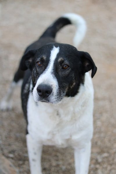 Ancho besitzt ein hübsches weißes Fell mit einer schwarz-braunen Musterung. Besonders niedlich ist seine weiße Schnauze mit der tollen Fellzeichnung am Kopf. Insgesamt ist der Rüde optisch ein richtiger Blickfang und Hingucker. Gegenüber unseren Helfern zeigt sich Ancho menschenbezogen und freundlich, sowie verträglich mit anderen Hündinnen - bei Rüden entscheidet die Sympathie bzgl. der Verträglichkeit. Ancho genießt Streicheleinheiten und die Nähe zum Menschen, wovon er im Tierheim leider nicht so viel bekommen kann, da dafür die Zeit fehlt. Seine neuen Lieblingsmenschen sollten Freude am gemeinsamen Training mitbringen, damit sich ein gutes Mensch-Hund-Team entwickeln kann. In seinem neuen Zuhause sollte ein ausbruchsicher eingezäunter Garten mit direktem Zugang zum Üben und Freilaufen vorhanden sein. Wenn Ancho Ihr Herzenshund werden soll, freuen wir uns auf Ihre Anfrage!
