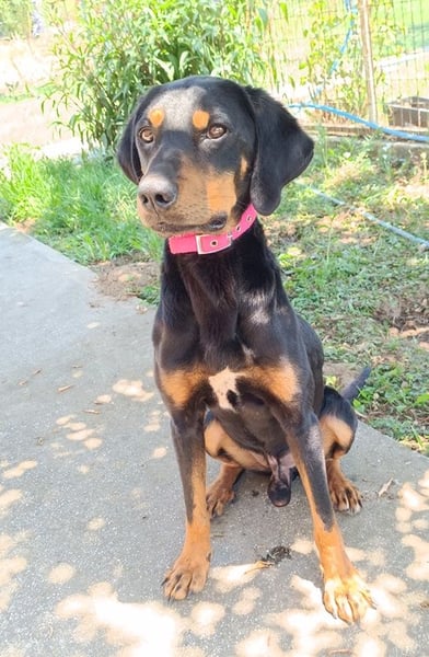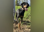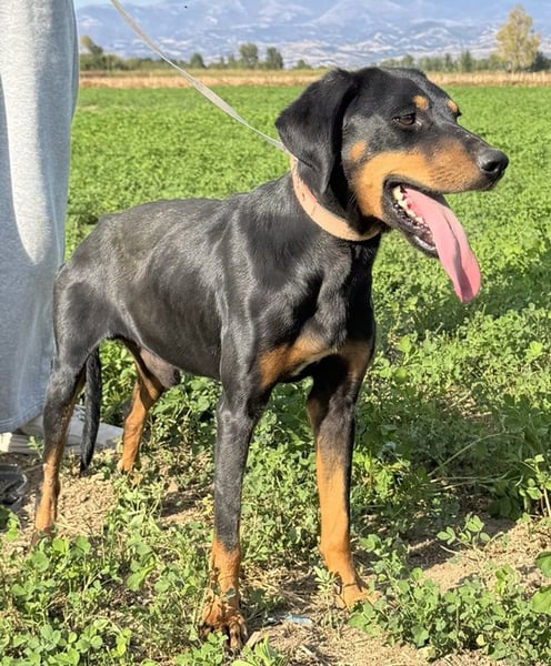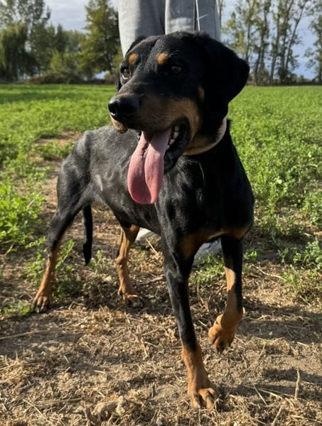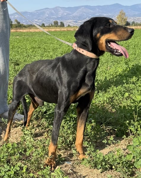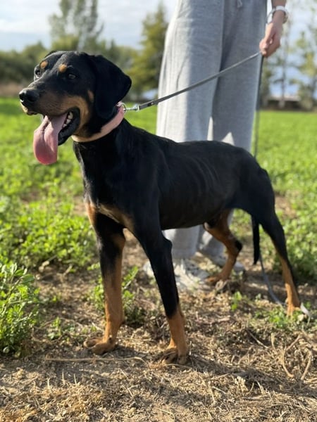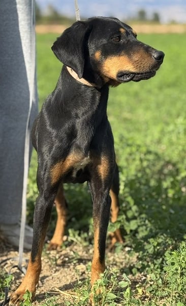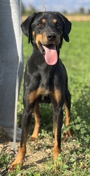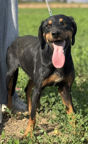 Schwarzes kurzes Fell, braun-rote Schnauze, Bauch und Pfoten, mit wunderschönen braunen Augen. Das ist Zwölf! Doch nicht nur Äußerlich hat sich der hübsche Rüde verändert - durch die Liebe und Fürsorge von Iliana ist aus einem verängstigten, abgemagerten Hund ein lebensfroher und gesunder Vierbeiner geworden. Zwölf ist trotz allem, was ihm widerfahren ist, Menschen gegenüber aufgeschlossen und verschmust. Zurück geblieben ist nur sein Unwohlsein an lauten und überfüllten Orten, wie zum Beispiel in einer Innenstadt. In ländlichen Gegenden zeigt er sich verspielt und selbstbewusst.