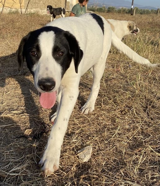 Rico ist ein liebenswerter Rüde, der bereits sehnsüchtig am Zaun die Pfleger vor Ort erwartet. Bei ihm handelt es sich um einen neugierigen und derzeit aufgeschlossenen Rüden, der sich gerne in der Nähe des Menschen aufhält und diese für ihn doch so besondere Zeit genießt. Er trägt ähnlich wie seine Geschwister eine Fellzeichnung in Schwarz und Weiß, so besitzt er aber als Besonderheit schwarze Pünktchen oberhalb der Nase und am Bauch. Auf der Pflegestelle zeigt er ein liebes und verschmustes Wesen. Zudem ist er vor Ort mit den anderen Artgenossen verträglich.