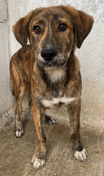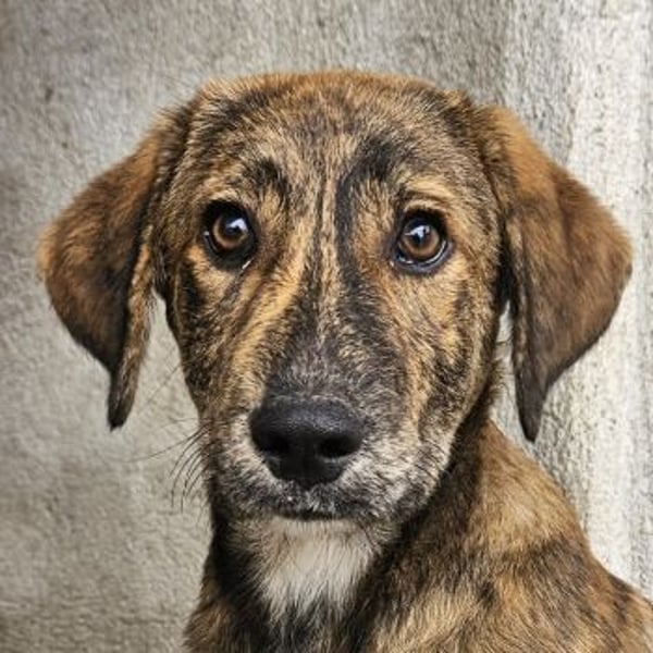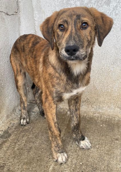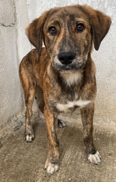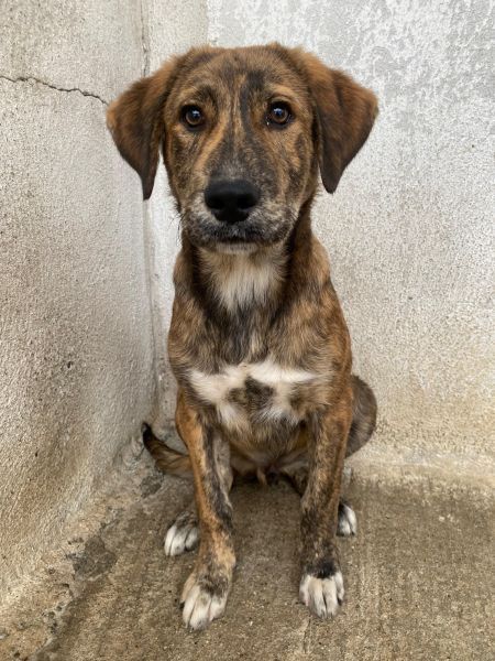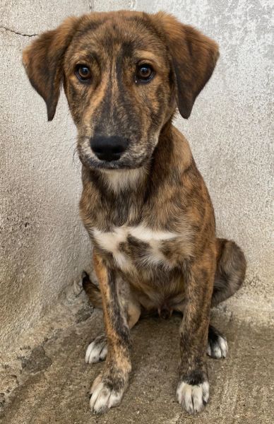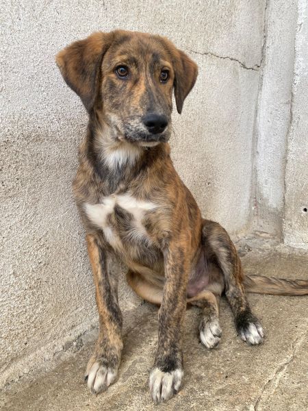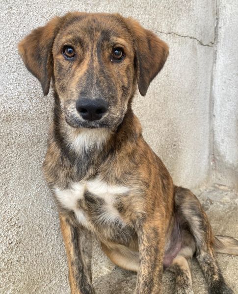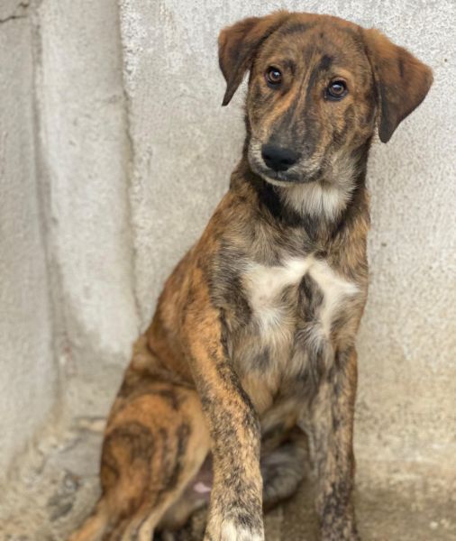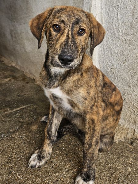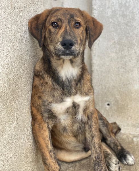 Fiyero ist ein besonders hübscher junger Rüde mit einem wunderschönen, braun-schwarz gestromten Fell, das im Sonnenlicht schimmert und ihn zu einem echten Hingucker macht. Sein sanfter, wacher Blick verrät Neugier und Freundlichkeit und auch ein kleines bisschen Sehnsucht nach einem Menschen, der ihn liebt.