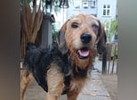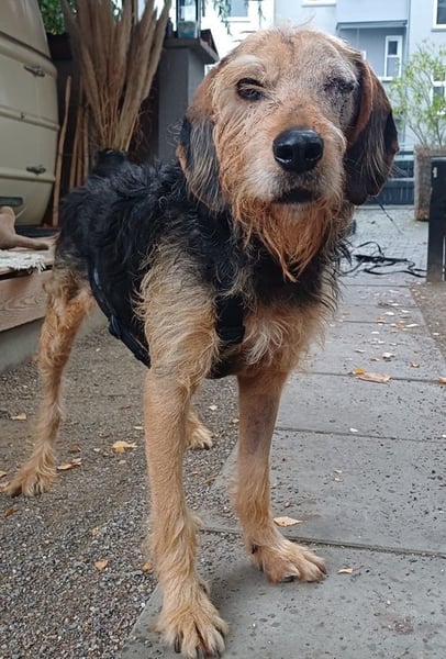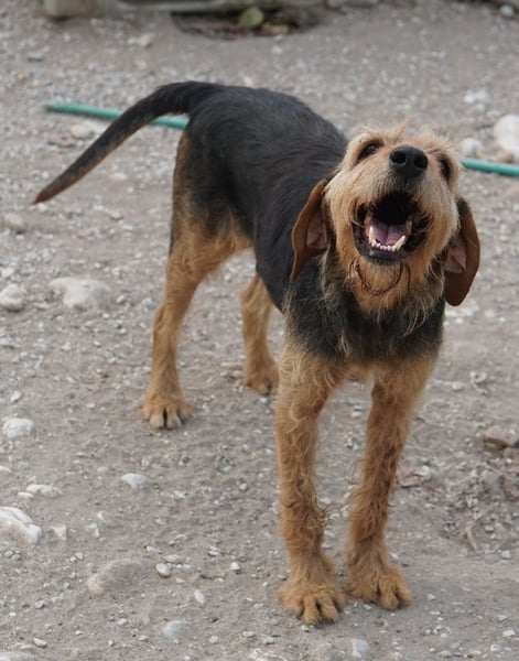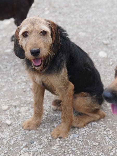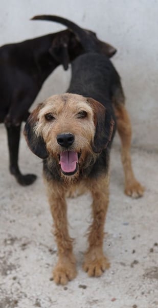 Yasko ist ein braun-schwarzer, mittelgroßer Jagdhund-Rüde mit drahtigem Fell. Er hat ein süßes Bärtchen und lange Schlappohren. Da sich Yasko im Tierheim in Serres sein linkes Auge stark verletzt hat, musste es ihm entfernt werden. Mit seinem kleinen Handicap kommt er jedoch sehr gut zurecht.