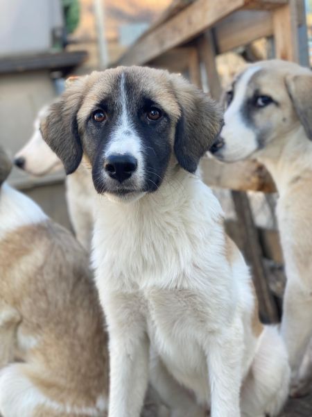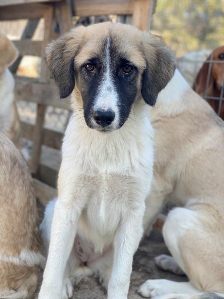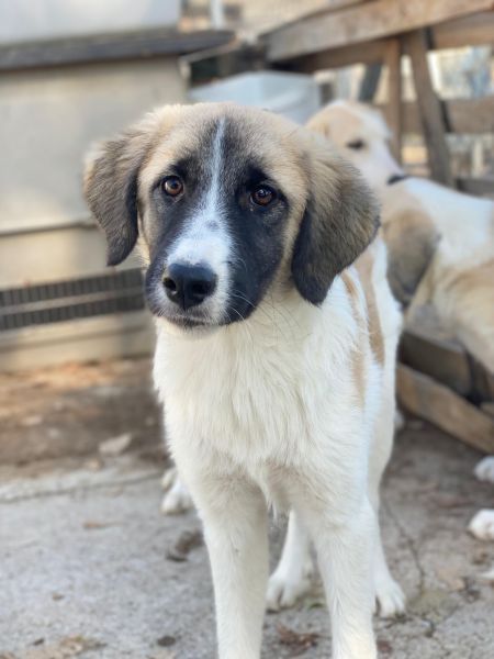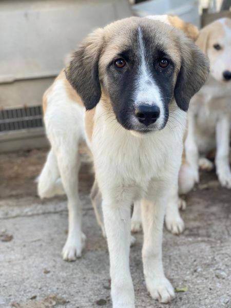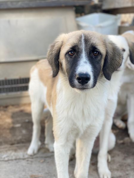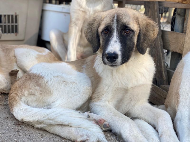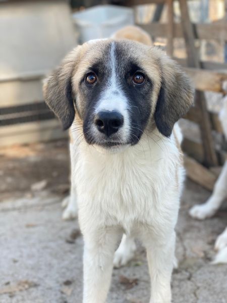 Dinka hat ein tolles Fellkleid, hauptsächlich hell mit dunklen Öhrchen und einer besonderen Zeichnung im Gesicht. Ihre Augen erzählen schon viel von ihrem Charakter. Dinka ist insgesamt lieb, jedoch noch zurückhaltend und wird Zeit brauchen, um sich an den Kontakt zum Menschen zu gewöhnen. Mit Artgenossen zeigt die junge Hündin sich aktuell verträglich und ist welpentypisch verspielt. Da Dinka bisher noch nicht viel kennenlernen durfte, braucht sie in ihrem zukünftigen Zuhause viel Zeit und Ruhe um anzukommen. Sie sucht Menschen, die bereit sind, mit ihr zu trainieren und ihr Sicherheit geben, neue Dinge in ihrem Tempo kennenzulernen. Eine souveräne Erziehung ist bei ihr sehr wichtig, die Zusammenarbeit mit einer Hundeschule oder einem Hundetrainer könnte ebenfalls hilfreich sein. Dinka hatte bisher einfach noch nicht die Chance, die schönen Seiten des Hundelebens kennenzulernen und hat noch keine positiven Erfahrungen mit Menschen machen können. Wir sind uns sicher, dass sie, bei viel Liebe und Geduld, zu einer tollen Begleiterin heranwachsen wird.