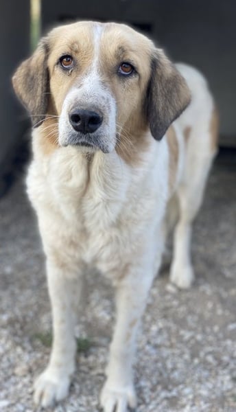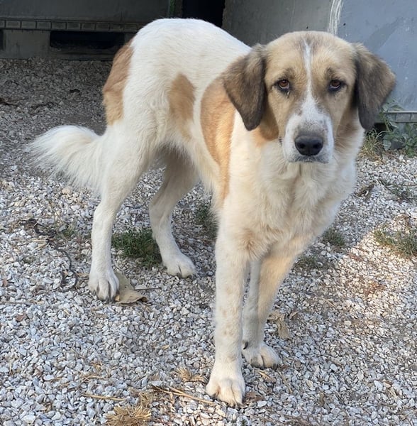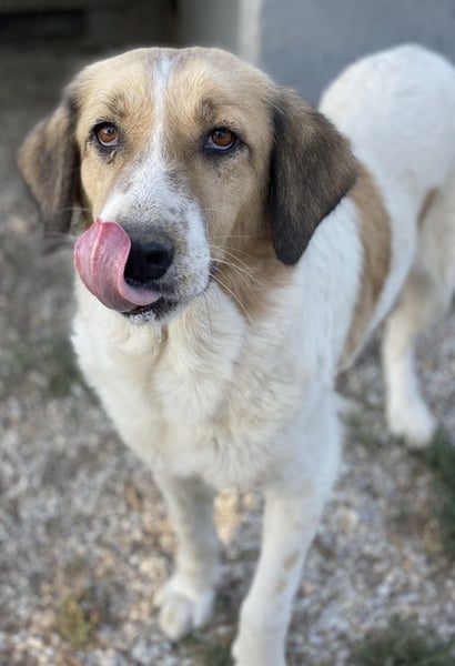 Clementini ist eine wirklich wunderschöne Hündin. Sie hat braun-weißes Fell und eine tolle Gesichtszeichnung. Aufgrund ihrer Größe und Optik hat sie wahrscheinlich Herdenschutzhunde unter ihren Vorfahren. Gerne informieren wir Sie genauer über die Besonderheiten dieser einzigartigen Hunde. Clementini wird als etwas zurückhaltend gegenüber Menschen beschrieben. Ihr sollte man die nötige Zeit geben, um Vertrauen aufzubauen. Mit ihren Artgenossen kommt sie gut zurecht und zeigt sich derzeit verträglich.