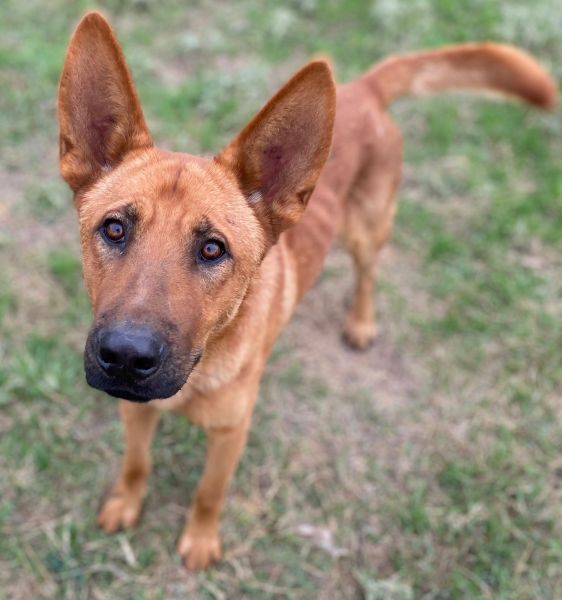 Zylo ist ein charmanter Rüde mit kurzem, braunem Fell und auffallenden Stehohren, die ihm einen besonders wachsamen und zugleich liebenswerten Ausdruck verleihen. Sein aufgeweckter Blick verrät Neugier und Lebensfreude. Man spürt sofort, dass er bereit ist, die Welt gemeinsam mit seinen Menschen zu entdecken.