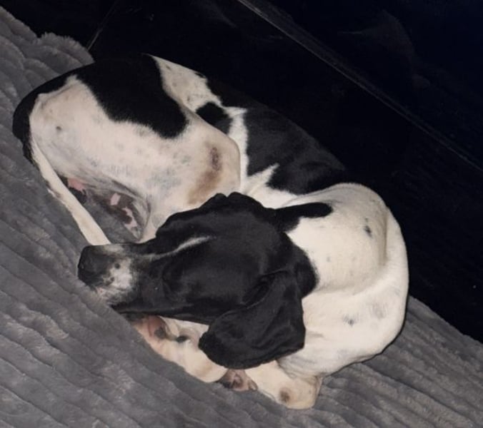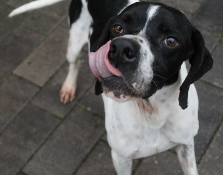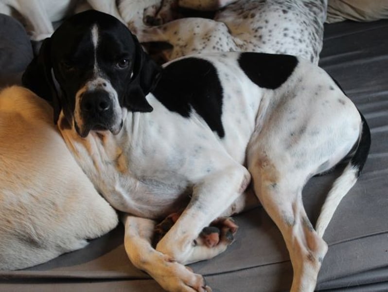 Optisch ist Attila ein echter Hingucker: ein schwarz-weißer Pointer-Mix mit einem herzgewinnenden Blick, dem man kaum widerstehen kann. Da er bereits gut an der Leine läuft und problemlos im Auto mitfährt, vermuten wir, dass er früher schon einmal ein Zuhause hatte.