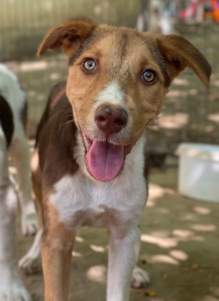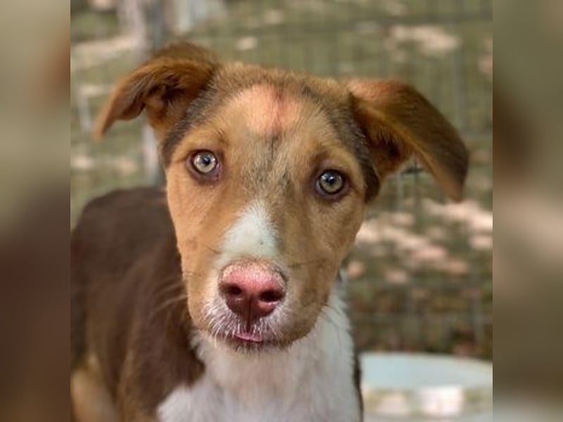 Hardo ist ein echter Hingucker mit seinem dreifarbigen Fell, das durch eine markante Zeichnung im Gesicht und auf der Brust besonders zur Geltung kommt. Seine hellen Augen machen ihn noch einmal mehr zu einem ganz besonderen Hund. Hardo zeigt sich als verspielter, neugieriger und aufgeweckter Welpe, der offen auf Menschen und Artgenossen zugeht. Er liebt es, zu toben, zu kuscheln und die Welt zu entdecken – am liebsten gemeinsam mit anderen Hunden oder liebevollen Menschen an seiner Seite. Mit seinen Artgenossen zeigt er sich vor Ort aktuell verträglich.