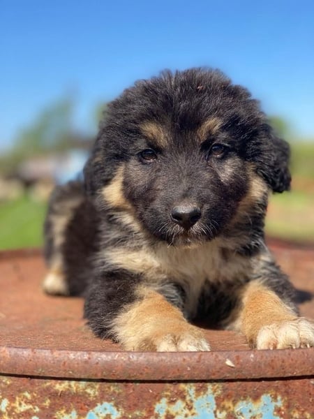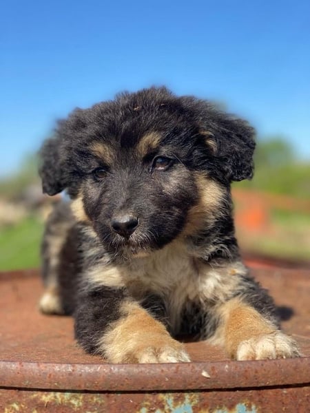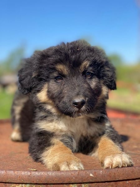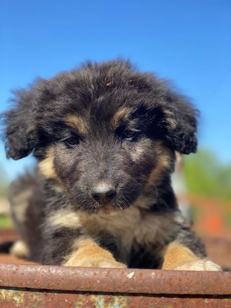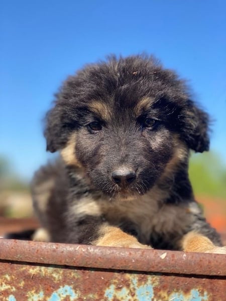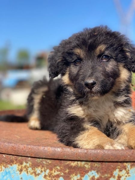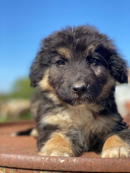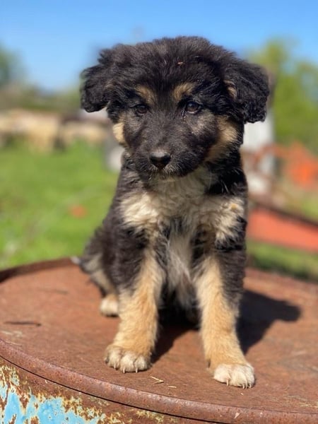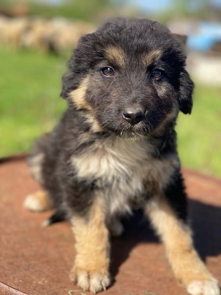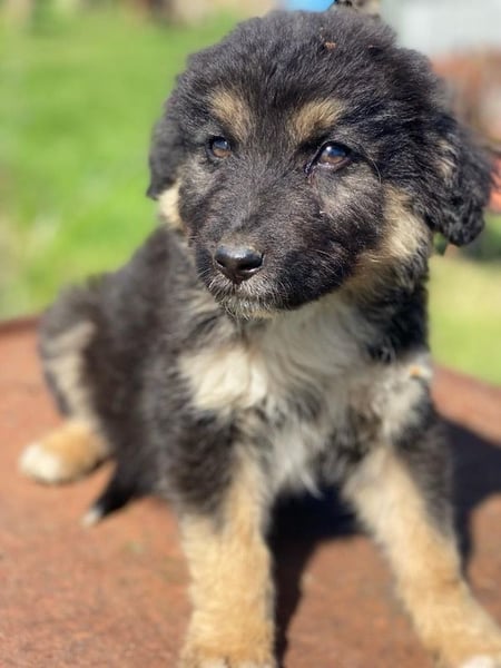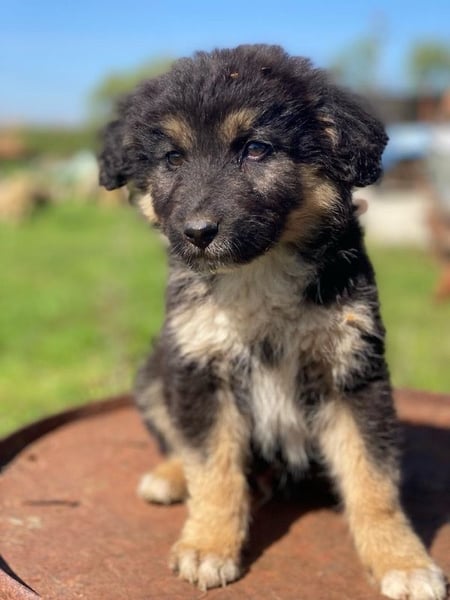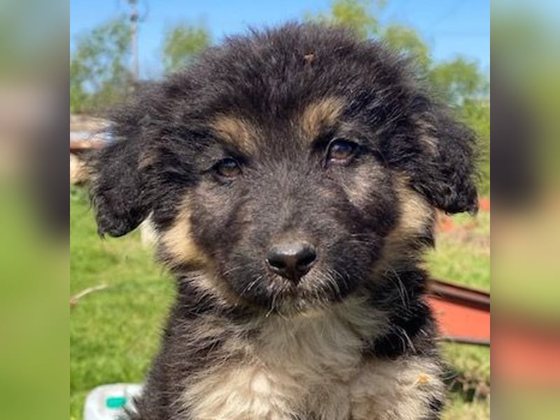 Sirius Black ist ebenfalls zu einem hübschen, großen Rüden herangewachsen. Seine Fellzeichnung, dominiert von dunklen Farben und durchzogen von hellen Akzenten in sanften Brauntönen, verleiht ihm ein großartiges Aussehen. Sein Wesen strahlt Freundlichkeit aus und er ist immer bereit für ein Abenteuer oder eine Streicheleinheit. Dank seiner frühen Erfahrungen in einem Umfeld voller Tiere konnte er auch schon Hühner und Katzen kennengelernt. Er zeigt sich bislang sowohl menschenbezogen als auch verträglich mit Artgenossen.