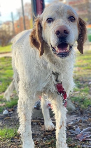 Mael ist ein bildhübscher Kerl. Mit seinem hellen Fellkleid, den hellbraunen Schlappohren und den Pünktchen im Gesicht ist er ein absoluter Hingucker. Er ist ein stattlicher Kerl und im besten Alter, um noch ein toller Familienhund zu werden.