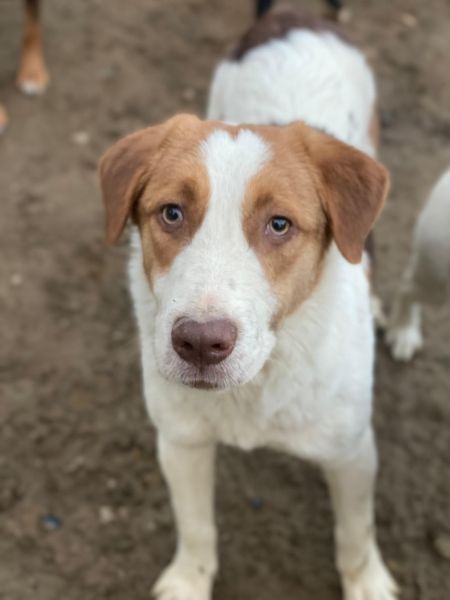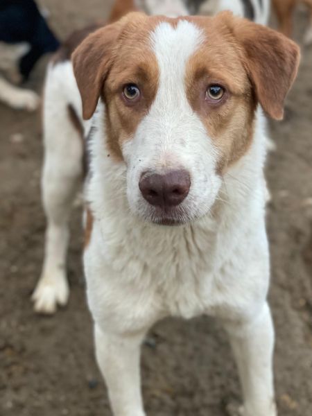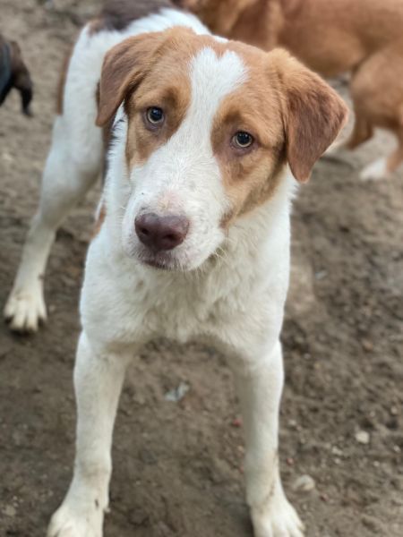 Herkos ist ein echter Hingucker. Sein dreifarbiges Fell, hauptsächlich weiß mit einigen hellen und dunklen braunen Akzenten, die ihm einen ganz besonderen Ausdruck verleihen. Seine hellen, klaren Augen strahlen vor Neugier und Lebensfreude. Charakterlich zeigt sich Herkos aktuell als sehr sozialer, freundlicher und verspielter Junghund, der den Kontakt zu Artgenossen liebt. Leider ist im stressigen Alltag vor Ort viel zu wenig Zeit, um sich intensiv mit den Hunden zu beschäftigen. Trotz seiner freundlichen Art braucht er – wie alle jungen Hunde – eine liebevolle, geduldige und konsequente Erziehung, damit er sich zu einem sicheren, ausgeglichenen Begleiter entwickeln kann.