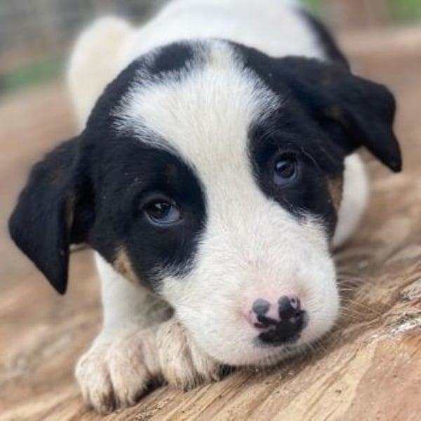 Unsere Hawaii ist ein niedliches Hundemädchen in einem überwiegend weißen Fellkleid. Sie trägt jedoch auch einige schwarze Abzeichen am Körper verteilt und hat braune „Bäckchen“ im Gesicht, die sie unverwechselbar machen. Später möchte sie vermutlich mal eine etwas größere Hundedame werden, die neben einem liebevollen Zuhause auch ein fundiertes Training genießen möchte. Hierfür kann der Besuch einer gut gewählten Hundeschule oder aber die Zusammenarbeit mit einem passenden Trainer oder einer passenden Trainerin nicht schaden. Auf ihrer Pflegestelle zeigt sich die junge Hündin freundlich, verträglich mit Artgenossen und ihrem Alter entsprechend verspielt. Da Hawaii das Zusammenleben in einem Haus jedoch nicht kennt, sollte sie langsam an ihr neues Umfeld herangeführt werden. So wird sie sicher schnell ein vertrauensvolles Verhältnis zu ihren baldigen Lieblingsmenschen aufbauen können. Denken Sie, dass Sie das hinkriegen könnten? Dann freuen wir uns sehr, schon bald von Ihnen zu hören, um Hawaii auf ihre große Reise ins Glück schicken zu können – zu Ihnen nach Hause!