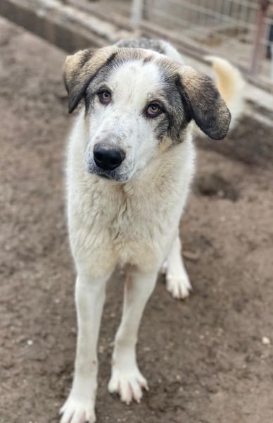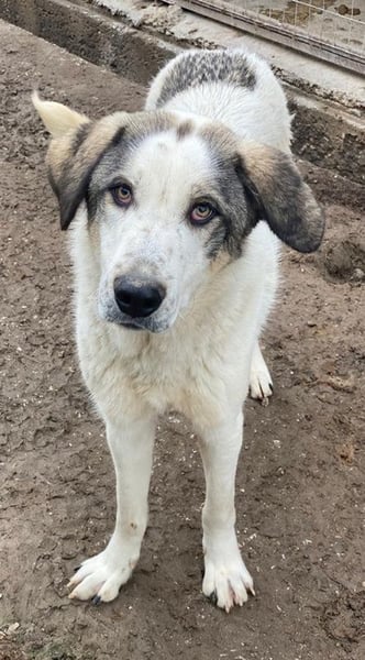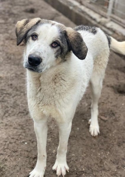Aron fällt mit seinen wunderschönen grün-braunen Augen und seinen schönen, dunkel gefärbten Ohren direkt ins Auge – der Rest seines schönen Fellkleids dagegen ist beinahe komplett weiß. Die dunklen Punkte um die ebenso dunkle Nase herum wirken wie Sommersprossen und verleihen ihm einen besonders hübschen Look. Mittlerweile ist er zu einer stattlichen Größe herangewachsen. Doch nicht nur sein äußeres Erscheinungsbild ist beeindruckend, sondern auch seine Charaktereigenschaften. Aron zeigt sich als sehr lieber und freundlicher Junghund. Auch mit seinen Artgenossen ist er verträglich und spielt gerne mit ihnen. Auch über Streicheleinheiten und menschliche Aufmerksamkeit freut sich Aron sehr. Er ist im allerbesten Alter und soll nun endlich sein persönliches Glück finden. Für den tollen Rüden wünschen wir uns eine Familie, die ihm eine liebevolle, aber auch souveräne Erziehung mit klaren Regeln bietet, damit er sein volles Potenzial entfalten kann.
