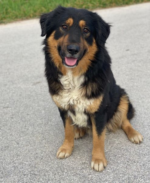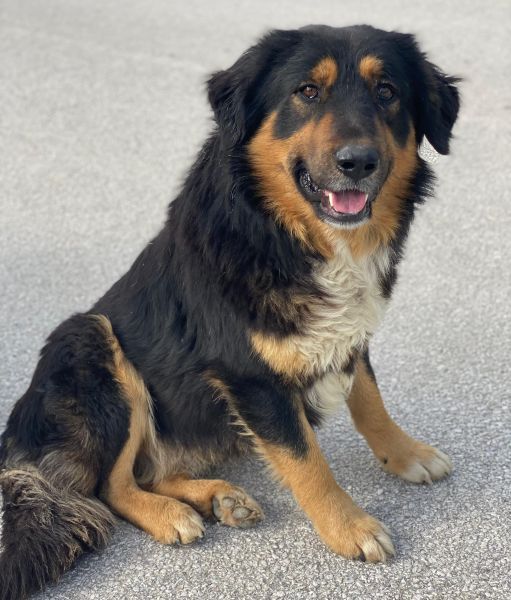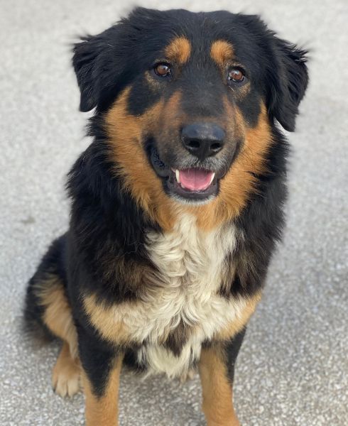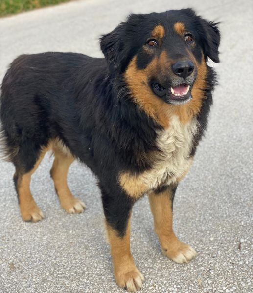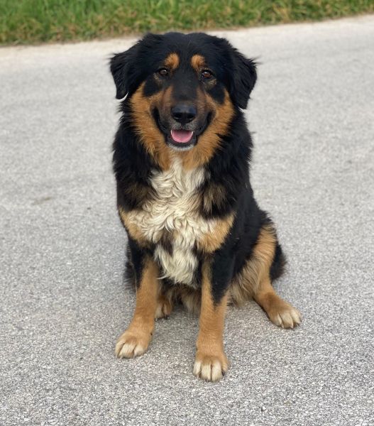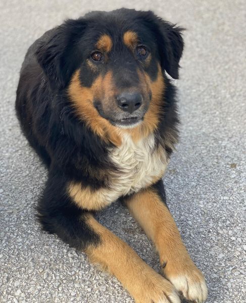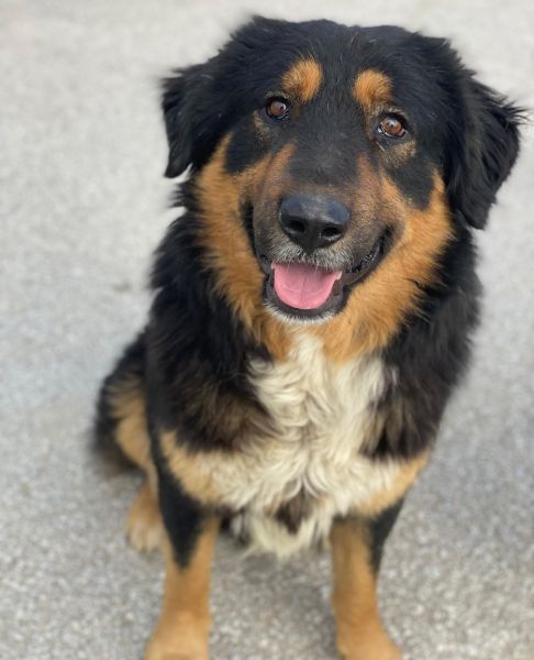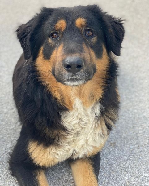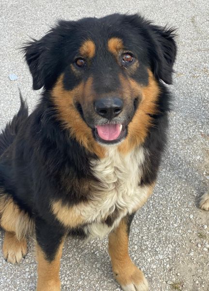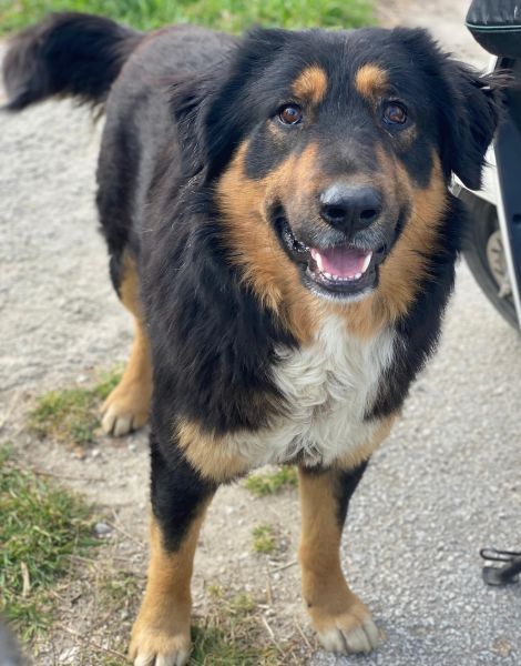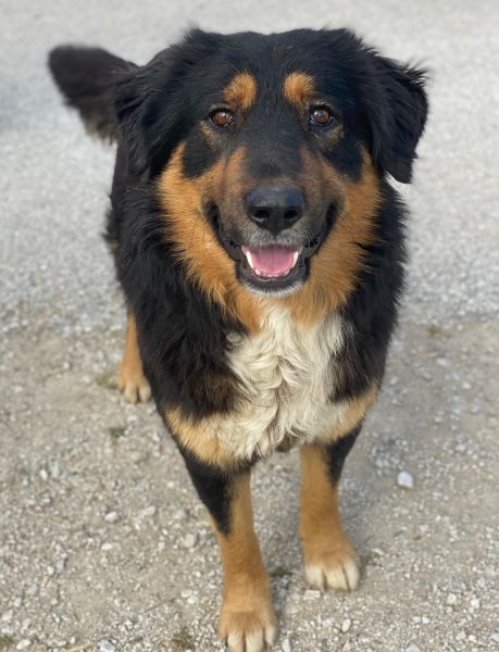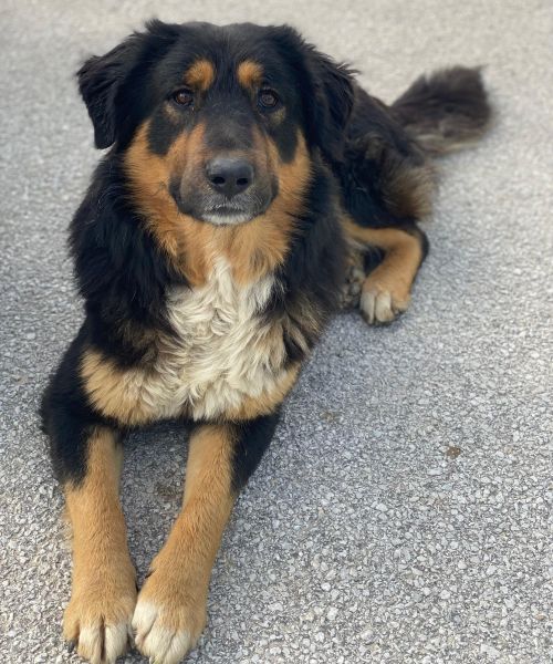 Sirius Black ist ebenfalls zu einem hübschen, großen Rüden herangewachsen. Seine Fellzeichnung, dominiert von dunklen Farben und durchzogen von hellen Akzenten in sanften Brauntönen, verleiht ihm ein großartiges Aussehen. Sein Wesen strahlt Freundlichkeit aus und er ist immer bereit für ein Abenteuer oder eine Streicheleinheit. Dank seiner frühen Erfahrungen in einem Umfeld voller Tiere konnte er auch schon Hühner und Katzen kennengelernt. Er zeigt sich bislang sowohl menschenbezogen als auch verträglich mit Artgenossen.