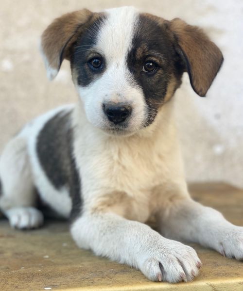 Die junge Hündin besticht durch ihr überaus freundliches und aufgewecktes Wesen. Trotz der Entbehrungen ihrer ersten Lebenswochen hat sie sich ihre Offenheit gegenüber uns Menschen bewahrt und geht aktuell voller Neugier auf neue Situationen zu. Das tägliche Miteinander mit ihren Geschwistern meistert sie spielerisch, wobei sie Streicheleinheiten und Zuwendung sichtlich genießt. Auch optisch ist Yoko eine wahre Besonderheit. Mit ihrer markanten, halbseitig dunklen Maske, die einen wunderschönen Kontrast zu ihrem ansonsten hellen Gesicht bildet, ist sie eine unverwechselbare Erscheinung. Im Kontakt mit ihren Artgenossen vor Ort zeigt sie sich zudem sehr sozial und fügt sich harmonisch in die Gruppe ein.