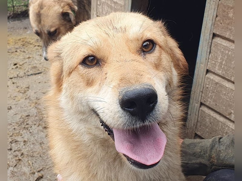Diese goldfarbene Hündin ist nicht nur äußerlich ein echter Sonnenschein – auch ihr Wesen strahlt Freundlichkeit und Lebensfreude aus. Im Zwinger zeigte sie sich quirlig und scheint eine witzige Maus zu sein. Sie ist aufgeschlossen, verspielt und zeigte sich im Tierheim sehr sozial im Umgang mit Artgenossen. Menschen begegnet sie neugierig und ließ sich problemlos anfassen. Zwar blitzt in neuen Situationen manchmal noch eine leichte Unsicherheit auf- vermutlich ist sie den engen Kontakt mit Menschen einfach nicht wirklich gewohnt. Doch dafür ist Naemi sehr mutig und ihr Wunsch nach Zuneigung und Nähe überwiegt deutlich. Das triste Tierheim ist absolut kein Platz für diese junge Hündin. Wer hat ein Plätzchen zu Hause frei und möchte Naemi die Chance auf ein schönes Leben ermöglichen?