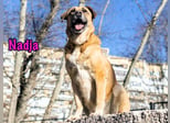 Nadja ist ein unglaublich menschenbezogener Hund. Ein Mensch ist für sie ihr ganzes Leben, sie liebt Menschen. Sie liebt es zu spielen, sich auf den Rücken zu legen und ihr Bäuchlein streicheln und kraulen zu lassen. Sie ist freundlich und sehr aufgeschlossen. Sie liebt es, herumzulaufen und mit Bällen zu spielen. Nadja hört gut auf Menschen. Sie ist umgänglich und gehorsam. Nadja wurde in einem Park in einer kleinen Stadt zwischen St. Petersburg und Moskau zum ersten Mal gesichtet. Die große Hündin machte den Menschen Angst. Sie lief fröhlich auf jeden zu und hoffte auf Gesellschaft, aber sie wurde weggejagt. Sie hätte in Schwierigkeiten geraten können. Dann holte eine freundliche Frau die Hündin von der Straße und brachte sie in einer stationären Tierklinik unter. Nachdem sie kastriert und geimpft war, zog Nadja in ein vorübergehendes Zuhause in Moskau.