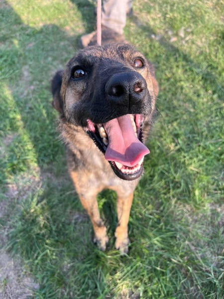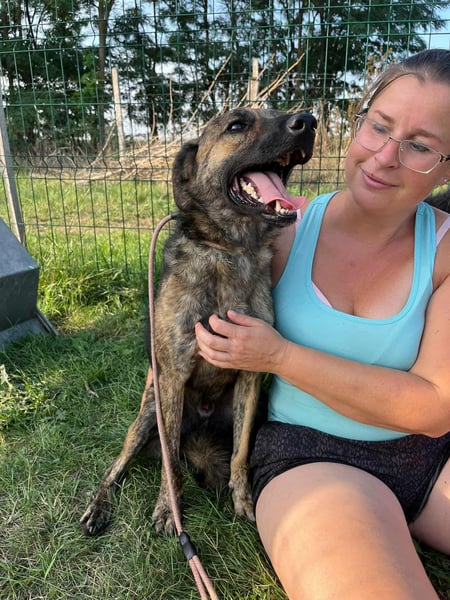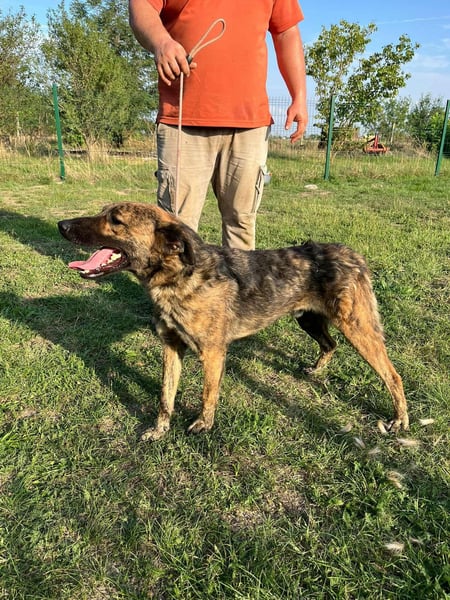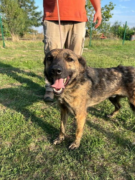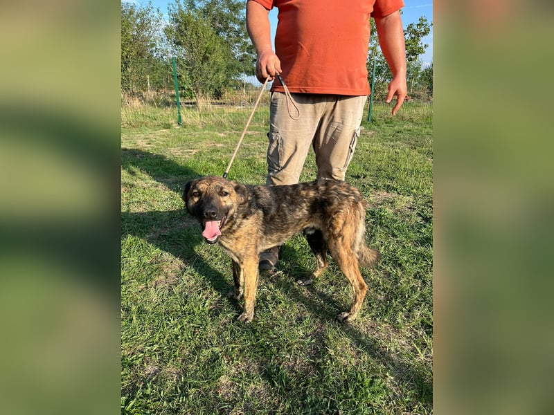 Er zeigt sich eher unterwürfig, freundlich – manchmal etwas unsicher, aber niemals aggressiv. Typisch für einen jungen Rüden testet er gelegentlich mit lautem Bellen seine Grenzen, doch er meint es nicht böse – er hat einfach noch nicht viel vom Leben kennengelernt.