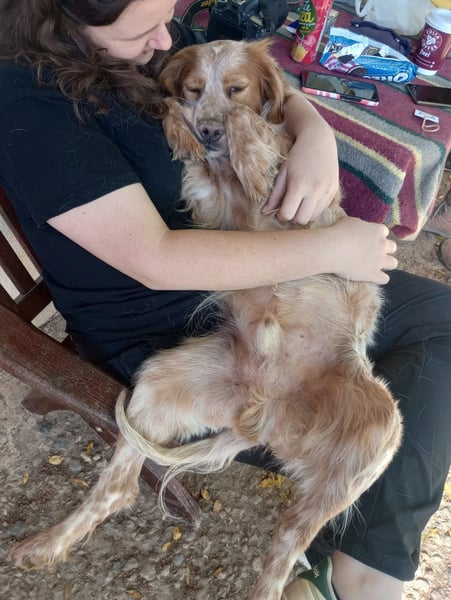 Optisch ist er ein wunderschöner Spaniel-Mix mit weichem Fell und warmem Blick – aber vor allem seine liebenswerte Art macht ihn besonders.