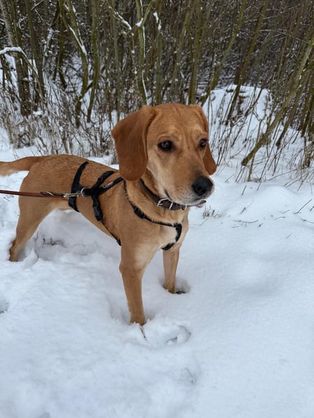 Gesucht wird für Mara eine sportliche, aktive Familie, die Freude an Bewegung und gemeinsamer Beschäftigung hat. Sie verfügt über einen mittleren Jagdtrieb, insbesondere ihre ausgeprägte Schnüffelnase möchte regelmäßig eingesetzt werden – ausgedehnte Spaziergänge, Nasenarbeit oder Suchspiele wären für sie ein echtes Highlight.