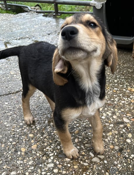 Wir weisen daraufhin, dass es sich bei Frieda um einen unbekannten Rassemix handelt und wir nicht sagen können wie groß sie mal werden wird. Wir vermuten, dass sie mindestens 50 bis 60 cm groß werden wird. Die Elterntiere sind uns bekannt (beide über 25 Kilo).