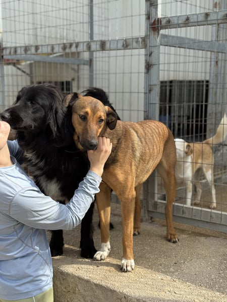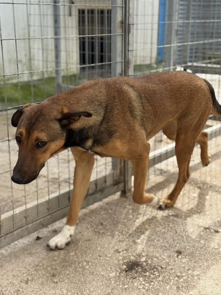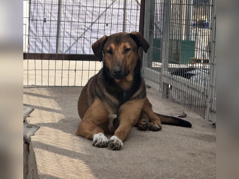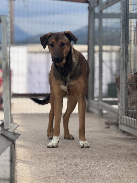 Wo und wie Kaltsas Lebensgeschichte begonnen hat, ist uns nicht bekannt. Dass sie vor ihrem Leben in unserem Kooperationstierheim nicht allzu viel Schönes erlebt hat, zeigt sie jedoch deutlich. Betritt man ihren Auslauf, so bemerkt sie dies schnell und kommt freudig angesprungen, lässt jedoch bei ihr noch unbekannten Menschen die anderen Hunde vor und beobachtet wedelnd aus der Ferne. Die Hündin mit den weißen Fell-Socken (von daher ihr Name) vorne an den Beinen braucht etwas Zeit, bevor sie sich den Menschen – und dies vor allem Männern – anvertraut. Hat sie erst einmal Vertrauen gefasst, lässt sie sich gerne anfassen und zeigt sich sehr freundlich und interessiert.
