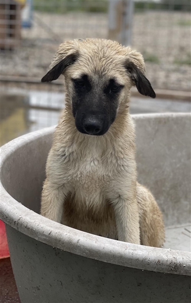 Idefix lebt mit vielen anderen Welpen und Junghunden im Zwinger, er liebt es mit ihnen herumzualbern und zu toben. Wenn man den Zwinger betritt und die Rasselbande auf einen zugelaufen kommt, ist er sofort dabei. Er springt dann um einen herum und freut sich auf die Abwechslung. Sobald er aber alleine ist und man sich versucht ihm zu nähern, geht er erstmal ein paar Schritte zurück. Wenn man sich aber Zeit nimmt und sich langsam und behutsam nähert, überwiegt die Neugier. Man merkt, dass er noch nicht viele Berührungspunkte mit Menschen hatte, er hat sich aber dennoch gut tragen lassen. Für ihn suchen wir hundeerfahrene Menschen, welche die Hundesprache verstehen und die notwendige Zeit und Geduld haben, ihn an ein Leben im Haus mit Menschen zu gewöhnen. Ein stabiler, souveräner Zweithund wäre bestimmt von Vorteil, von ihm könnte er sich noch ein bisschen was abschauen und sich an ihm orientieren, es würde ihm bestimmt vieles erleichtern (kein Muss).