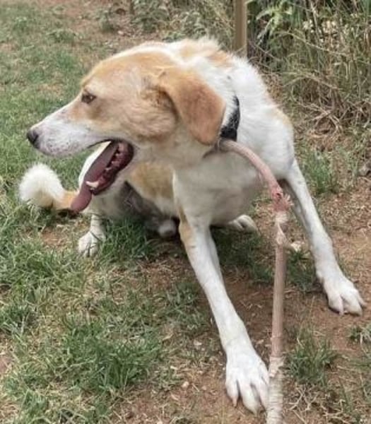 Frankie wurde etwa Mitte 2023 geboren und hat eine geschätzte Schulterhöhe von 52-56 cm. Er ist gechippt, geimpft und auch kastriert. Es sitzt also schon fast auf seinem gepackten Köfferchen um möglichst bald seine große Reise ins Glück anzutreten.